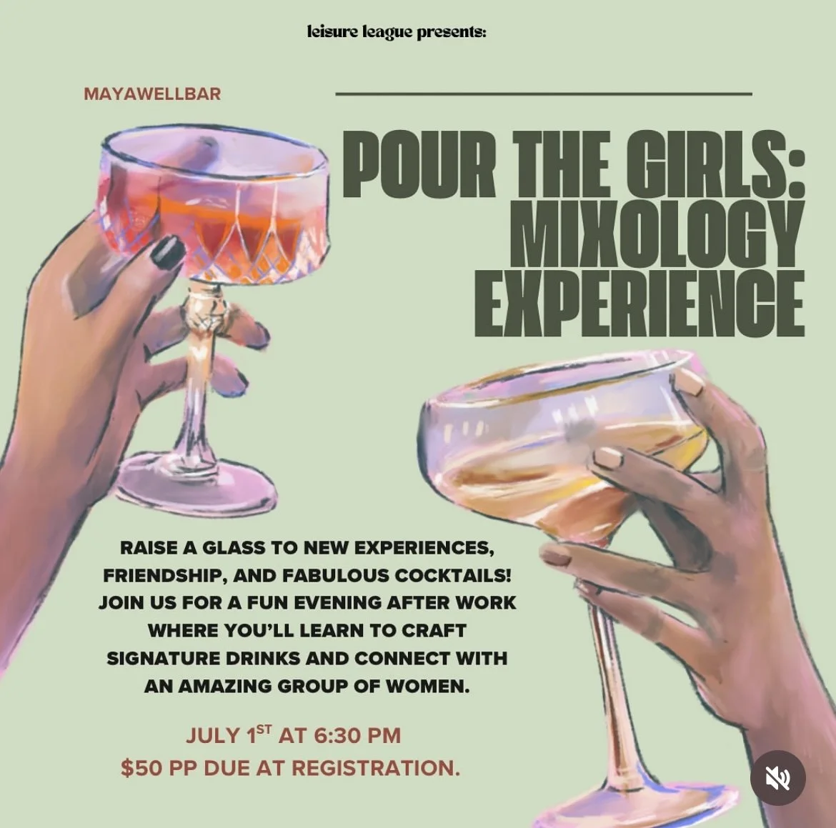 Join us for a fun evening of mixing and mingling! You’ll learn how to craft delicious cocktails in a hands-on mixology class, then sip your creations while connecting with other amazing women in a relaxed, social setting.