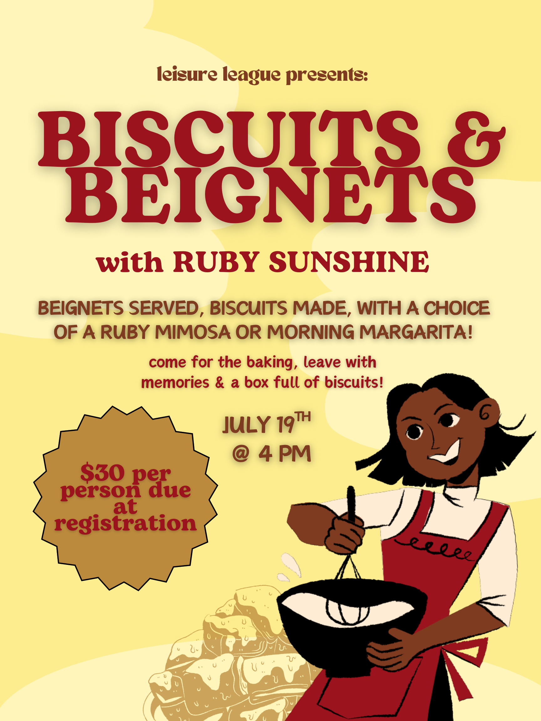 From flour to fluffy perfection— learn how to make biscuits completely from scratch in this hands-on class. You’ll leave with a box of biscuits you made yourself, plus new friends and a new hobby under your belt.